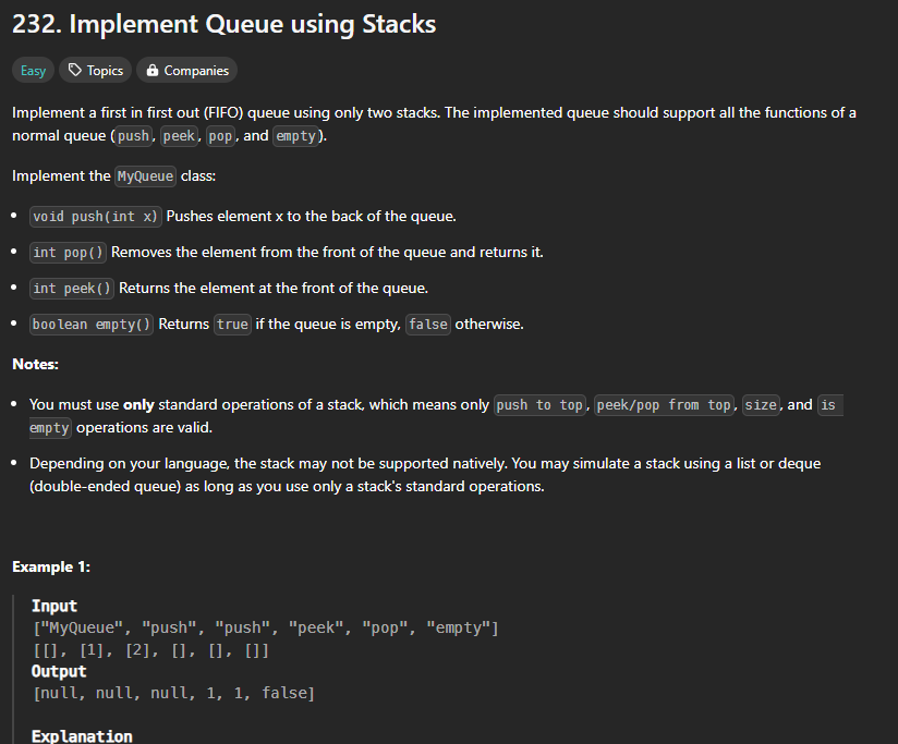 - 두 스택이 모두 비어있으면 큐도 비어있는 것